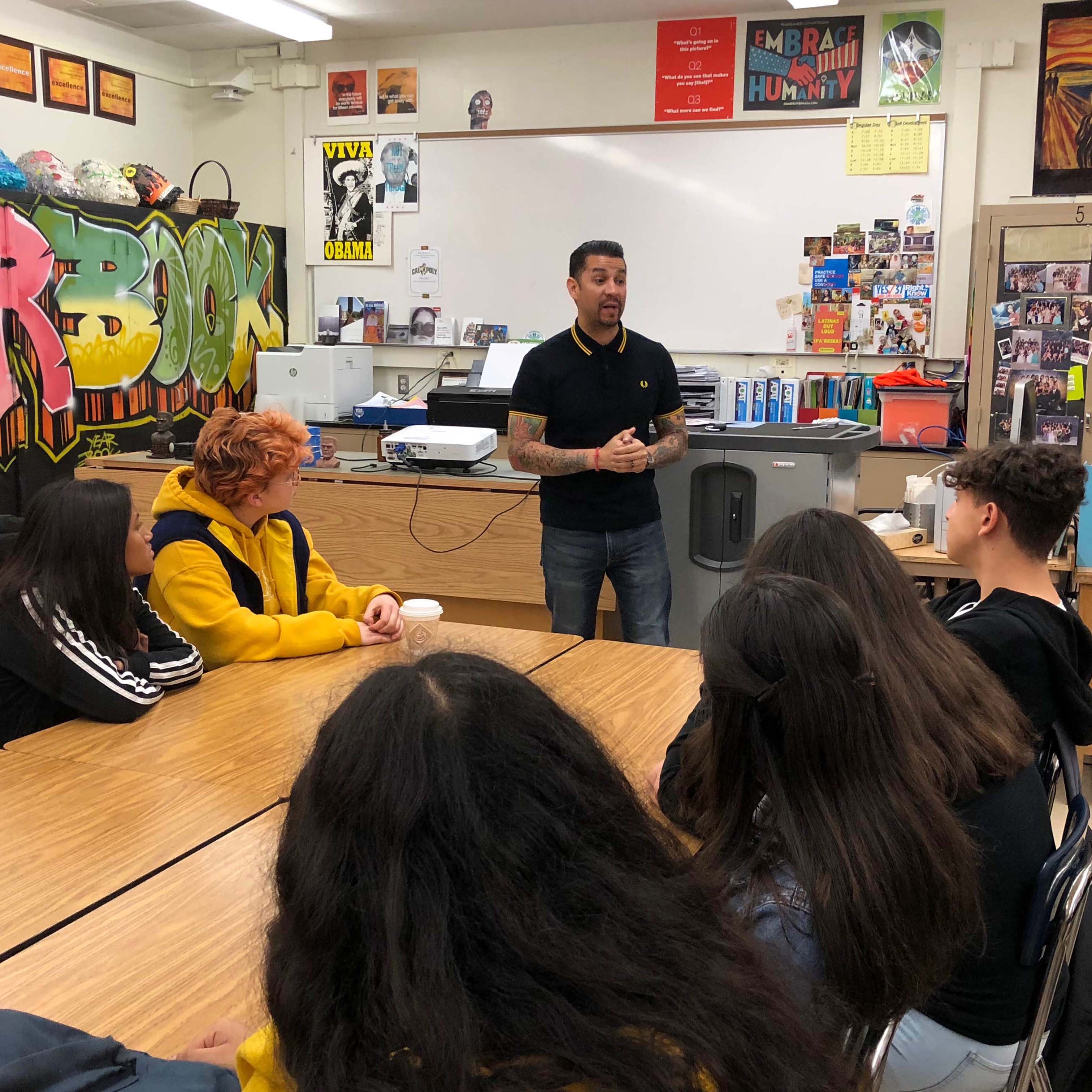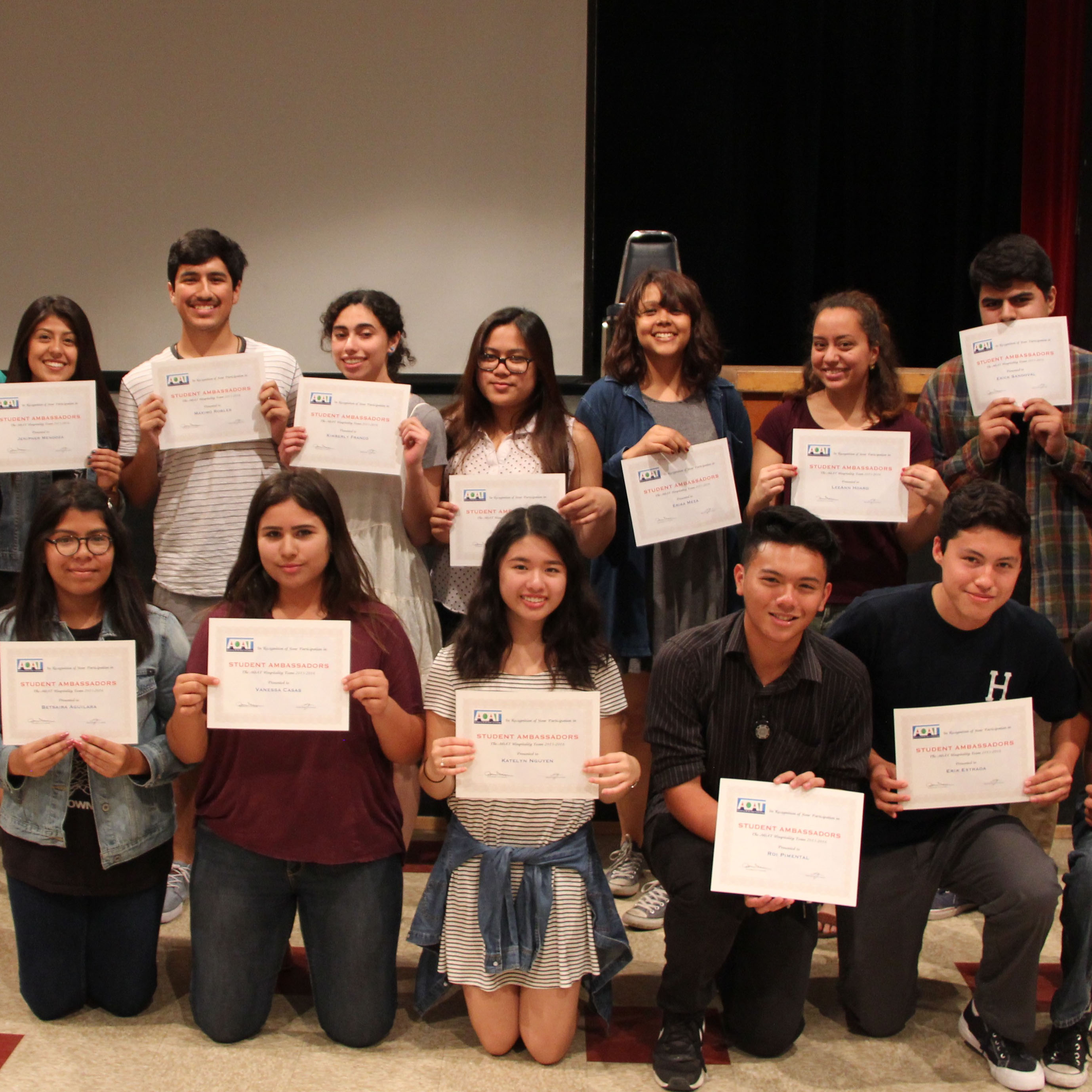 AOAT provides many opportunities for students to explore their community, from field trips to museums, to volunteering, to career connected visits. We also bring professionals to campus to share their insights about current issues, post-secondary education, and careers. The following are a list of activities that students participate in: Career Exploration Visits, Career Day, College Tours, Museum of Contemporary Art, Museum of Tolerance, Art Club, Annual Homecoming Float, Awards Ceremony, Community Outreach & Volunteer, Day of the Dead Festival, Conferences & Presentations,